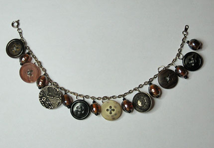 I re-discovered a container filled with random buttons and beads, and decided to make some jewerly. It was supposed to be earrings… but that quickly changed to charm bracelets. I have an unhealthy charm bracelet addiction.