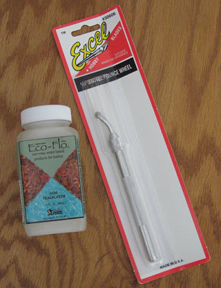 1. Those really *are* goodies. I use gum tragacanth on every single thing I make out of leather. It is such a wonderful aid–you won’t know how you ever lived without it!