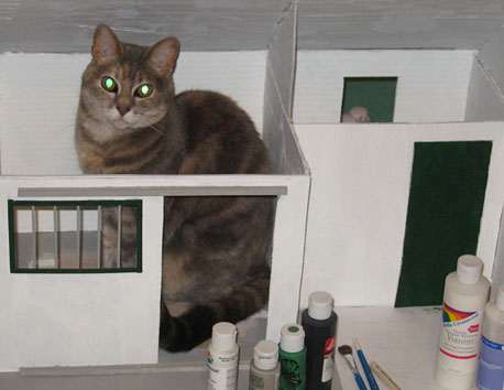 The whole thing is pretty rough around the edges, but hey. The cat approves! Now to avoid getting any more cat hair mixed in with the paint, ugh! 😀