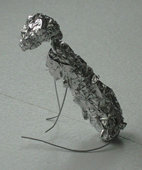 I hardly know anything about sculpting. But I know that it helps to start with a skeleton of sorts, which I fashioned out of wire and foil: