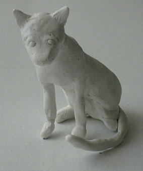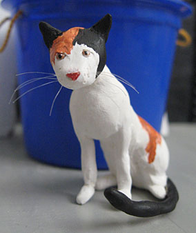 Then it was time to add the bits and pieces of clay, while wondering what posessed me to try sculpting a 1:9 scale cat instead of something well, easier. Like one of those clay pots or something. (look ma! Art!!)