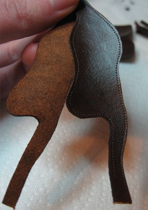 The edges have been smoothed down and burnished, and the pieces have all been covered with leather finish. I think with western saddles, more time is spent in the preparation of the pieces (carving, dyeing, finishing, etc) then actually putting the saddle together! All the extra time spent on those little details will show in the end though. It will be worth it! (I hope.)