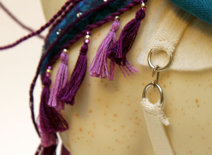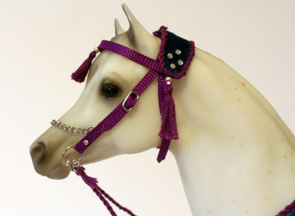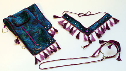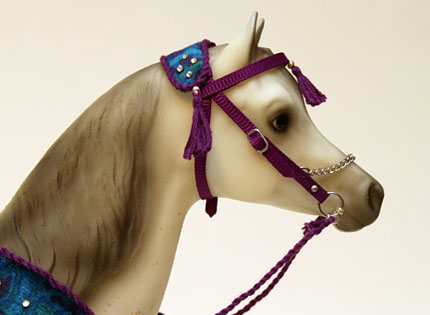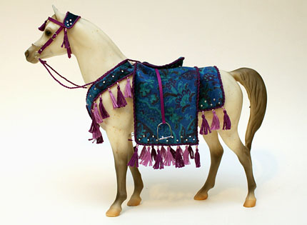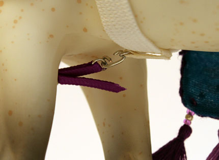 One thing I replaced was the girth. It originally attached on the wrong side and was made with a very slick ribbon. This time I used a band of elastic and cheated by giving it a hook-and-eye closure, instead of an actual buckle. It’s not realistic but it’s easy… and I like easy when it comes to tacking up models!