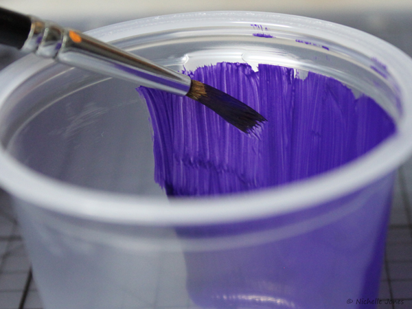 They’re really, really simple. I scratched the use-by dates off with my fingernail, then painted the inside with a couple coats of paint. Since they’re transparent, there really isn’t any need to paint the outside. I added a coat of varnish over it as well.