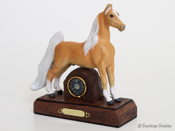 Last week I had all my mini whinnies scattered on my desk, (where did they all come from…!?) and was comparing the molds to the Traditional Breyer molds just for the heck of it. The saddlebred reminded me of the American Saddlebred stallion, which made me think of that clock they released for their 50th anniversary.