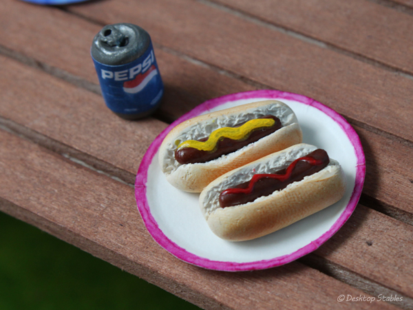 1. Love the mini food. I have a picnic table, too, but also no food. I keep meaning to dig some of my miniatures out and see what I can use for traditional size horses,