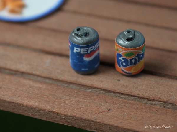 The soda cans were sculpted from clay, then brushed with a layer of silver paint.