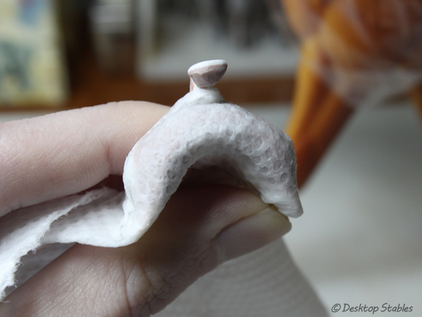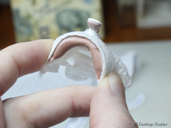 Once that was out of the way, I had to come up with a way to cover the pommel and gullet. I ended up forming a damp paper towel around the tree, then marked it to get the basic shape for my pattern.