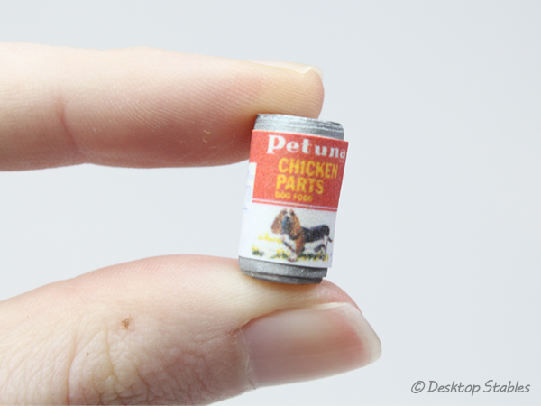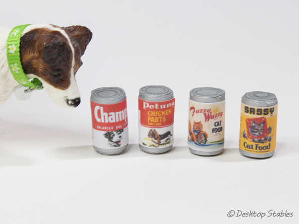 I had plans to print up mini bags of food, but when I started searching for images I got completely distracted by vintage pet food labels. So that led to some mini cans of food instead.