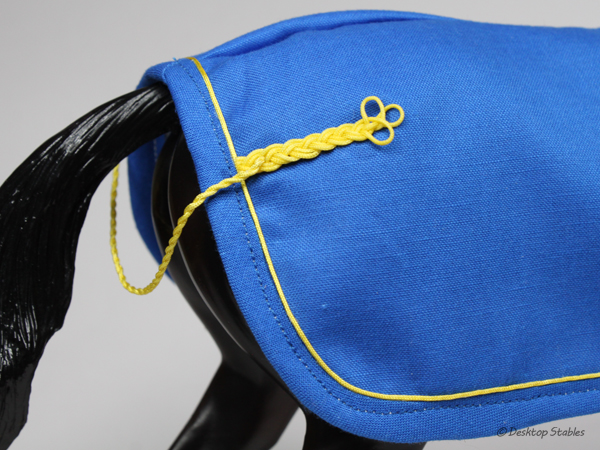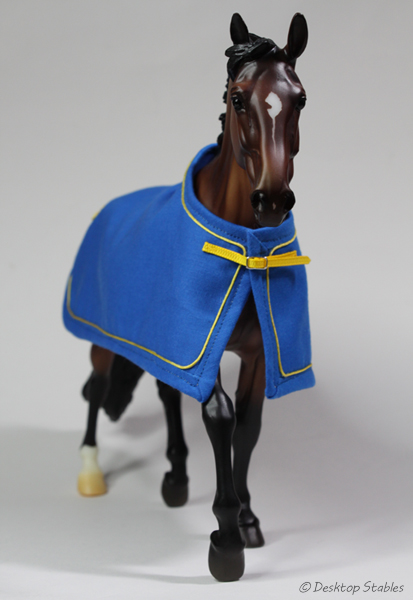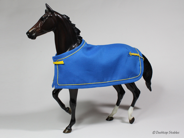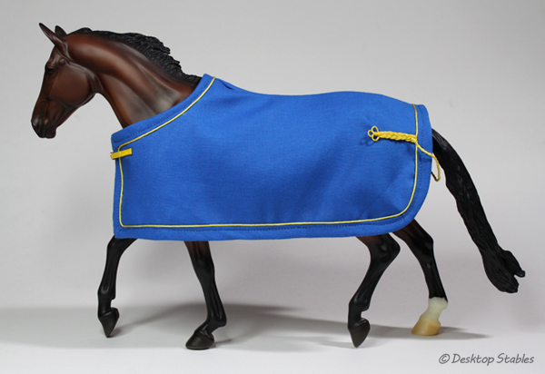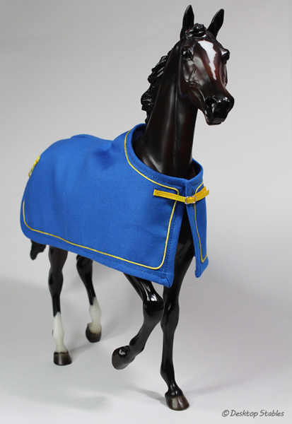 I got a couple more show coolers/dress sheets sewn up recently. The first is a bright blue with yellow trim: