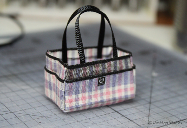 • Fabric of choice (cotton works best in this scale) and 1/8 in ribbon for handles