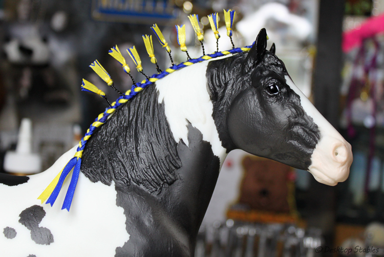 For example, this weekend has been all about draft horse ribbons and showing. An in-hand set for my Woodbridge is on the never-ending list of things to do, and I thought I’d get started on that by making some ribbons, (called flights) for his mane.