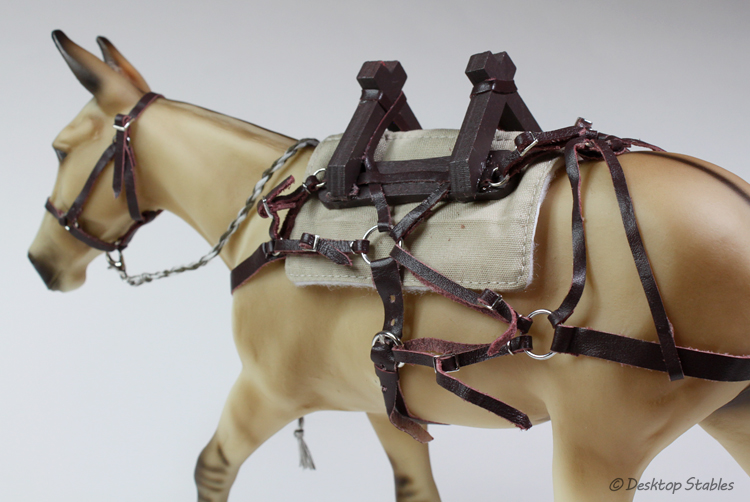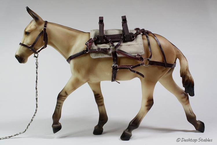 It arrived today and I’ve had some fun tacking up my mule. I’m kind of “eh” about Breyer tack (besides their fancy blankets- I love those!) but I’ll make an exception for this set. I mostly wanted it because A) it was designed by Jennifer and B) I want to make a pack set (eventually…) but the very idea of skiving all that lace makes me want to cry. That would hurt. A lot.