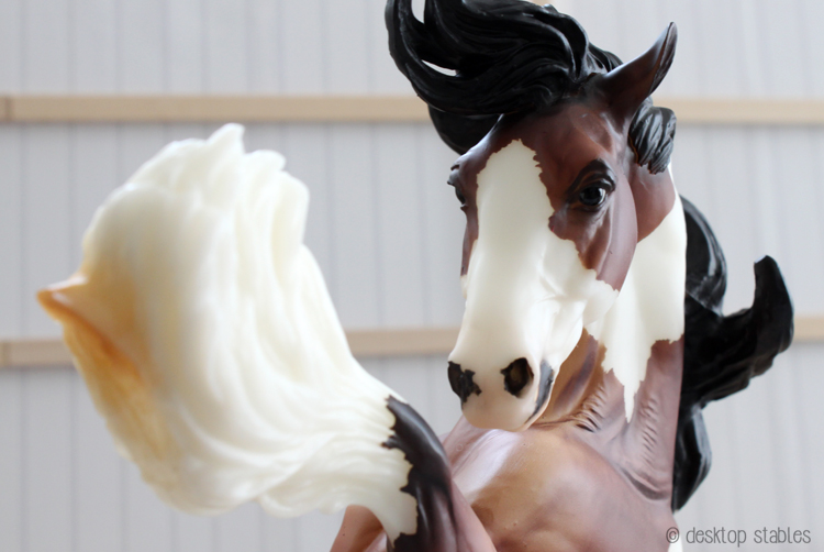 I can’t exactly remember when I tried to come up with a stable/studio name… it couldn’t of been long after I discovered the hobby on the internet. At first I wanted something to do with roses (Rose is my middle name and favorite flower) and Arabians… Desert Rose was an early name I think? Later it switched to Montana Rose. (which is now my ISH’s name) I can’t remember when I decided to call this “Desktop Stables” – it must have been around the time I started the blog. It doesn’t have a big backstory or any significant meaning. I don’t have a fictional stable as everything just exists on the desk, so I was probably poking fun at myself. Whatever the reason, it stuck.