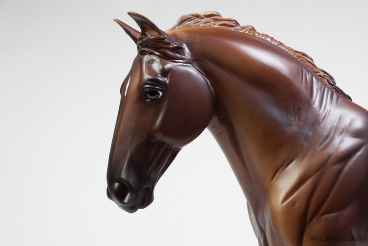 This is actually the second Cleveland Bay model I’ve owned. I bought the original CB when he was released, but he had a warped hind leg which caused him to lean to the side instead of stand up straight. I think it’s expected for horses in this particular pose to have some sort of lean (without a base or peg, anyway) but in my horse’s case it was really bad, haha. He always looked like he was about to fall over! I ended up selling him because it annoyed me so much.
