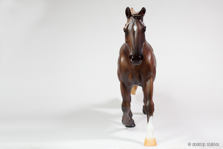 Woodbridge wasn’t the only chestnut to arrive recently. This is the Irish Draught from Breyer’s “Best of British” series. He’s an Irish breed, and since it’s St. Patrick’s day, it seemed fitting to share his pictures today. 🙂