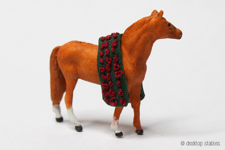 He looked a bit too plain so I added a tiny blanket of roses, like the one that was included with the 25th anniversary horse.