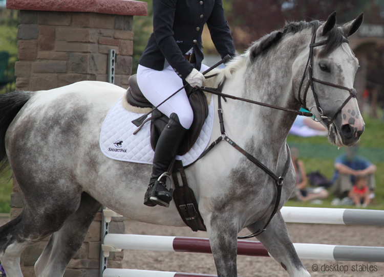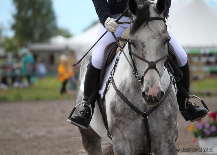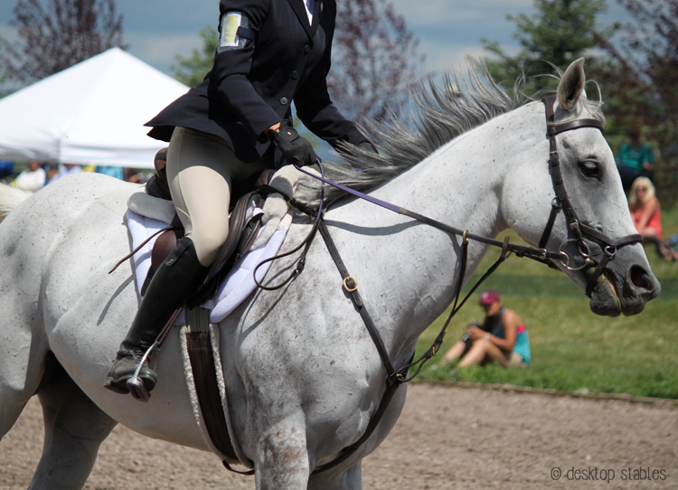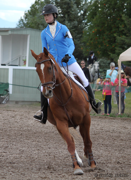 Most of the competitors wore black coats, so this girl really stood out in her bright blue. Goes well with the chestnut, I think. 🙂