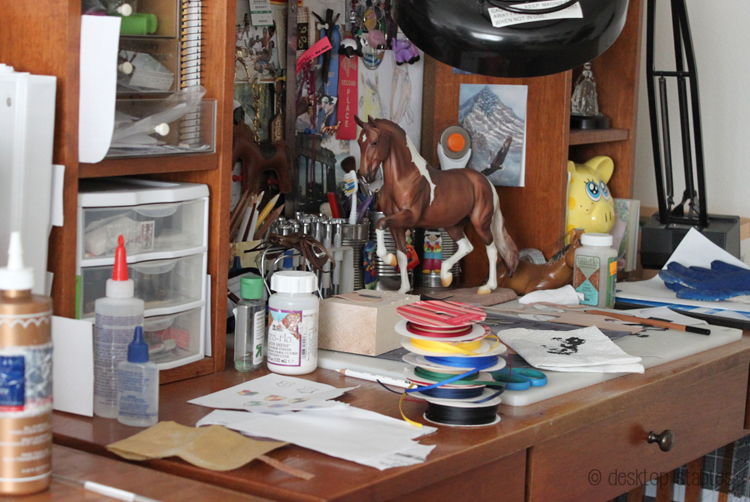 They’re all off to their new owners as I type this, yay! In-between orders I’ve been messing with my saddle again. As a result my desk has looked a bit chaotic for a few weeks now, which drives me nuts because mess! Clutter! Disorganization arghhh!