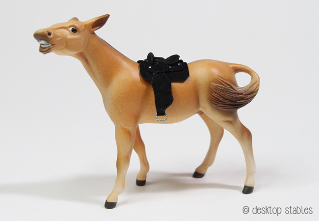 While attempting to organize some of my boxes of miniatures, I came across a bunch of old SM tack I made years ago. Aside from my customs, my remaining SM herd is all boxed up, so I thought it would be fun to get them out and play dress up. 🙂