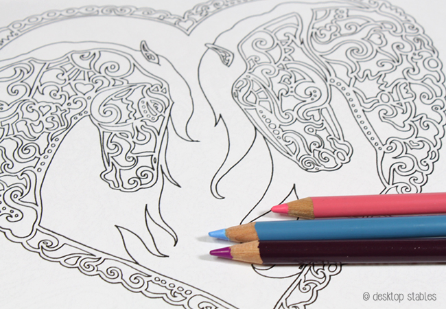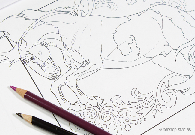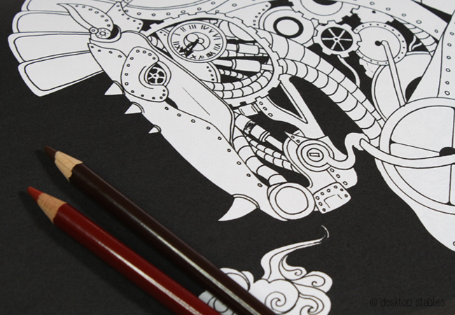 A few of them have solid black backgrounds, like this Steampunk inspired horse, which will look great once it’s all colored in.