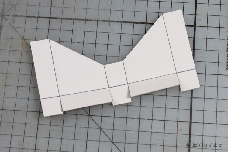 Score along the fold lines (I use a metal ruler and the back of an exacto blade to do this) and cut the entire thing out. Remember to cut the tabs on the bottom!