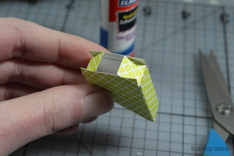 Fold it together and glue in place. I did cut one of the tabs off and shortened the longer ones here: