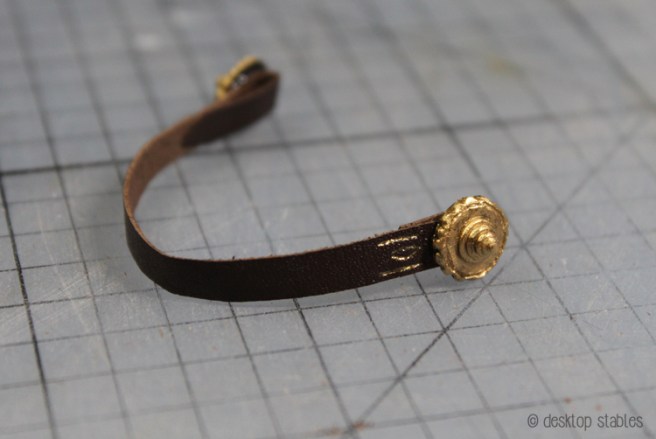 The next piece I decided to tackle was the brass rosettes on the browband. On my refs, this is almost always a circle with a scalloped edge, and a cone-like shape in the center of it. (though I did find one made from pieces of leather!)