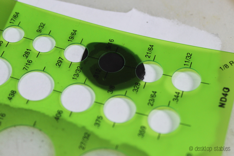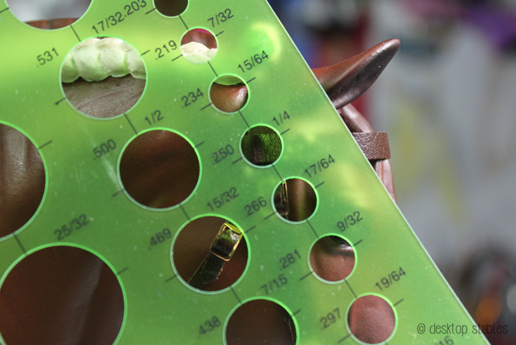 I used the template to cut a bunch of circles out from paper. In the end, I went with a 5/16 circle as it looked the best on the browband: