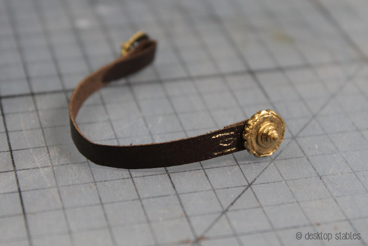 Most of my references have this decorative stitching on each end, so I added that and went over it with the gold paint again. I kind of like how it’s tying together with the hardware and all.