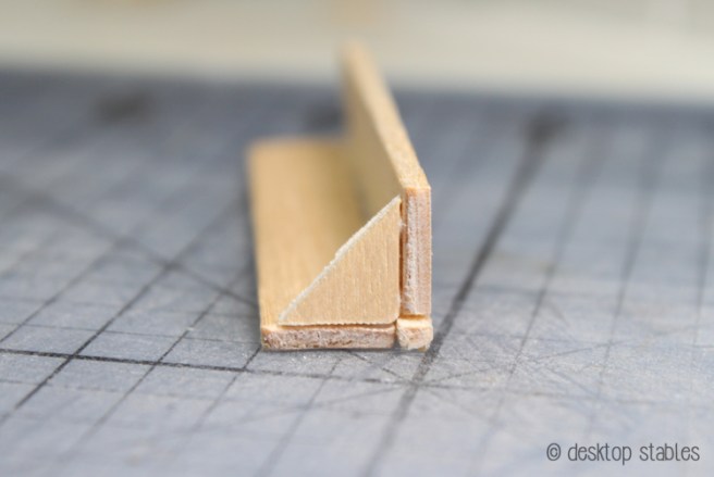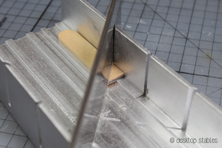 You will also need a tiny triangle – this is optional. To make this, cut a piece from a regular sized popsicle stick at a 45 degree angle. Using a mitre box is helpful!