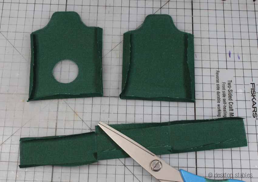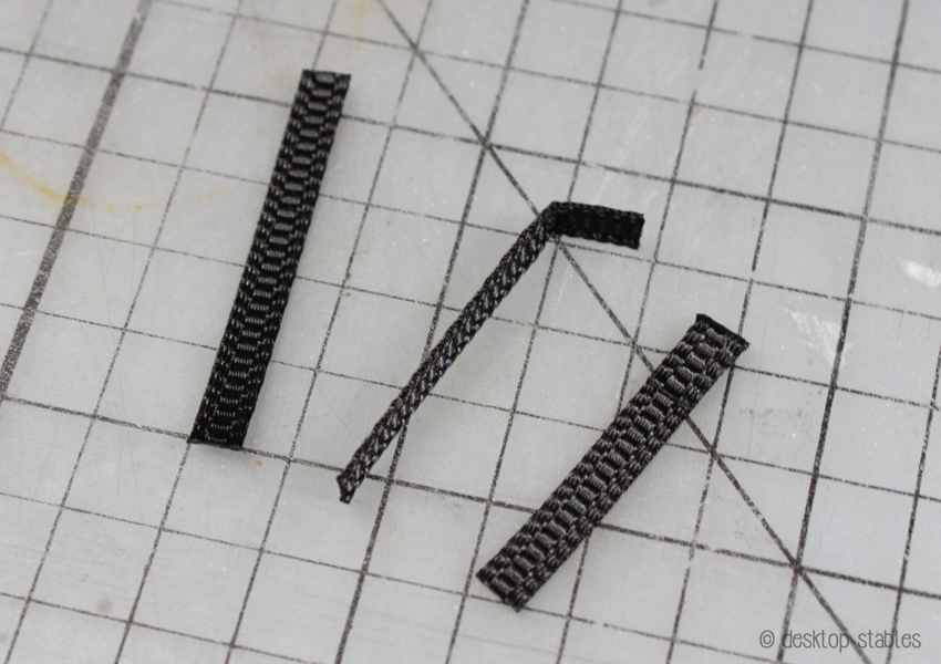 For the Schleich size, I saturated a piece of 1/8 ribbon in Fray Check, then split it in half to get a thinner piece.