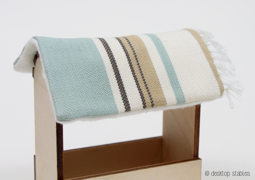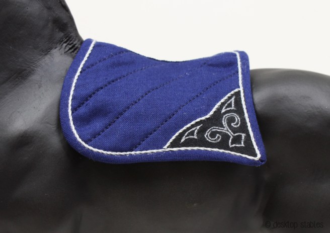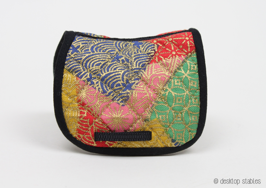 And lastly, a western pad was made from a fabric sample I’ve had in a box forever. It was just big enough! The fringe on the bottom was an experiment that seemed to turn out ok.