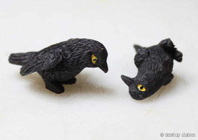The crows looked like good repaint fodder, and they really needed it. One couldn’t stand on his own either, but that was an easy fix with some sanding.