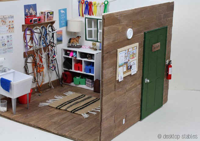 6. This is great! I’m planning a tack room for 18″ dolls, and I appreciate all your ideas. I build rooms out of boxes, too. To make them more sturdy, I line the inside of the box, and cover the outside of the box, with 1/4″ foam board (using hot glue) that I buy at Dollar Tree for $1 a sheet.