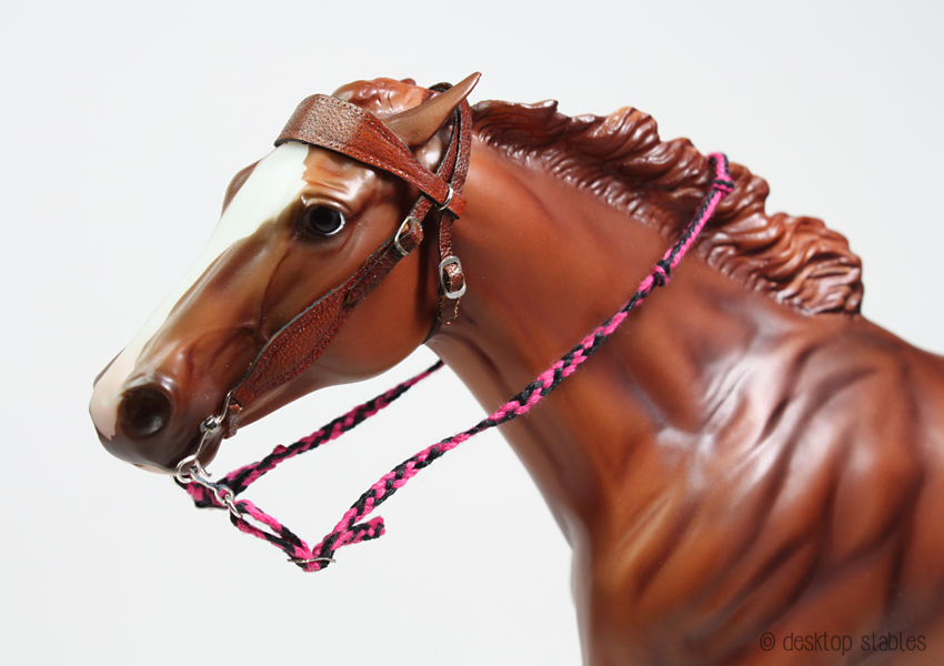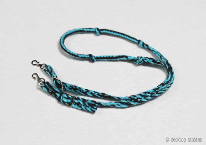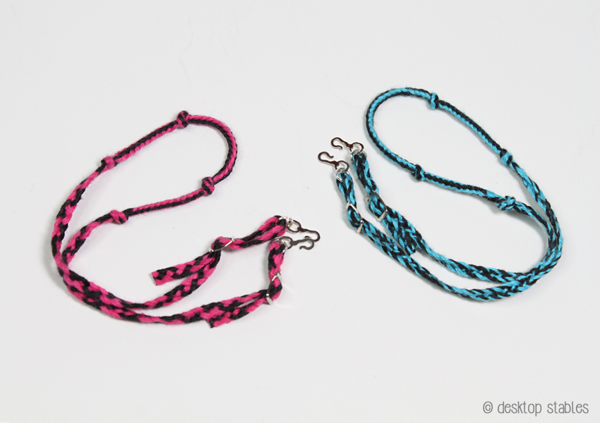 They look great, and definitely more accurate than the plain three-strand plait. I particularly like the black and blue reins. 😀