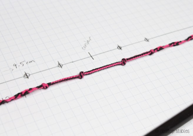 The four strand braid has a natural twist to it which is unavoidable, but really annoying in miniature. I tried to tone it down some by pressing the entire braid with an iron, and it seemed to help.