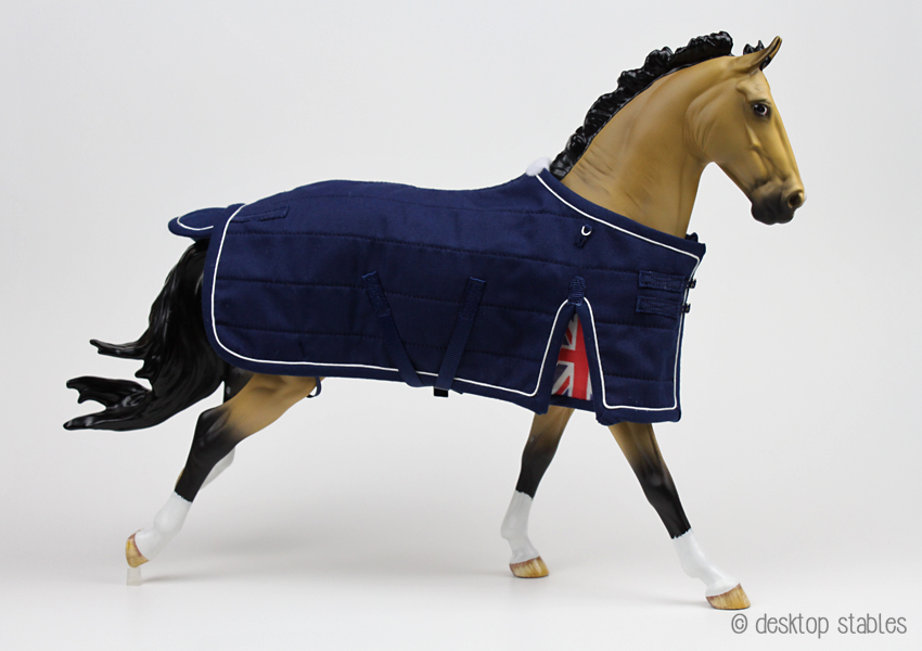 Wow! This is one of the best model horse blankets I have ever seen! I love the British flag detail, and that color goes great on Jasper! Great job!