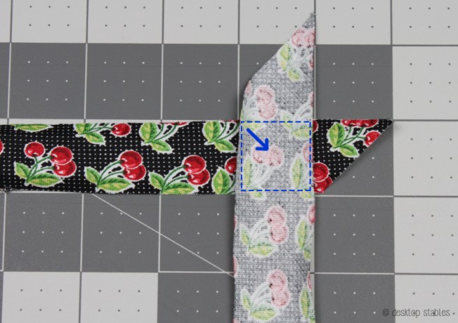 See the square? You’re going to sew diagonally across this, from the top left corner to the bottom right.
