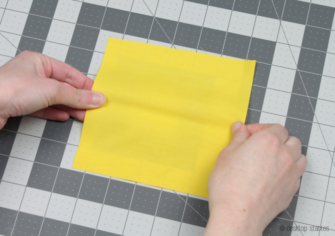To put it simply, bias tape is made by cutting a diagonal strip from your fabric. Here’s a square piece of fabric to illustrate.