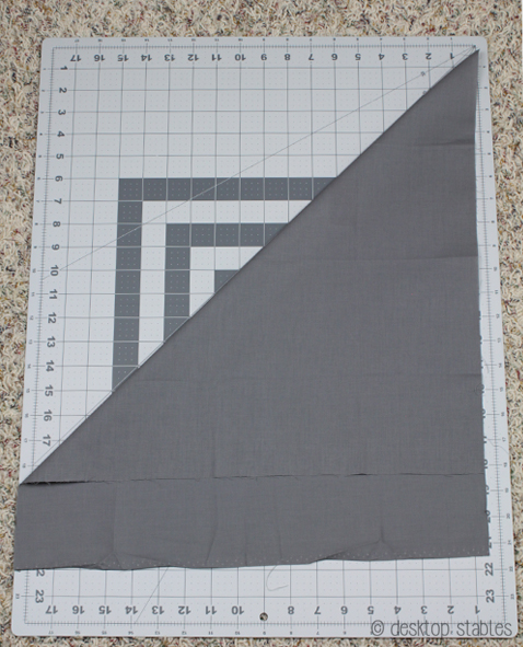 Cut along the fold line – you’ll have two fabric triangles to work with now. I tend to use whichever is larger first, as I can get a longer piece of tape from it.