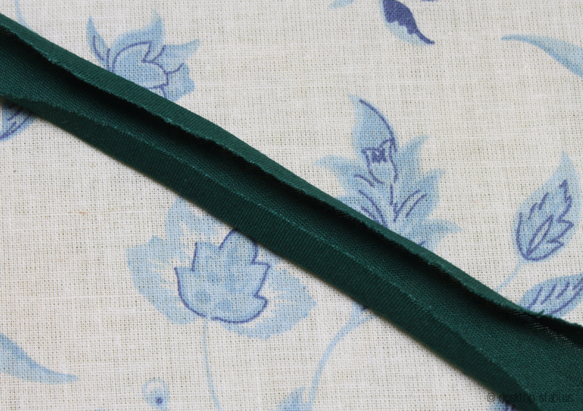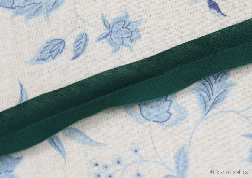 To finish the edges of a blanket or saddle pad, I use bias binding. This can be purchased pre-made at any fabric or craft store, in varying widths, folds and colors: