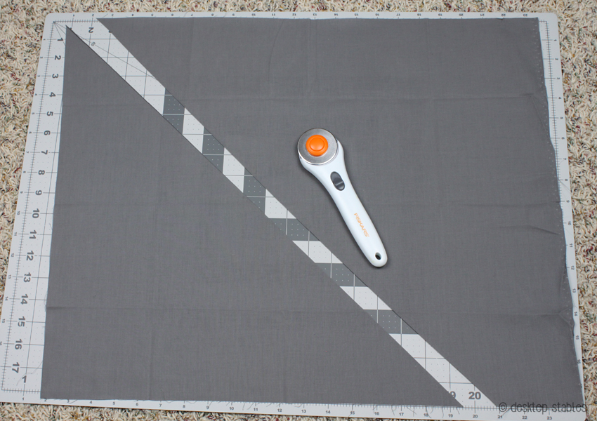 Cut along the fold line – you’ll have two fabric triangles to work with now. I tend to use whichever is larger first, as I can get a longer piece of tape from it.