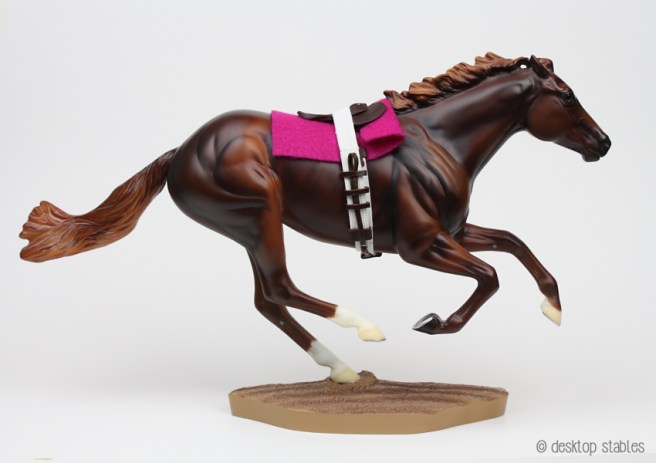 It originally had a green felt pad instead of the hot pink, and a simple snaffle bridle that’s disappeared.
