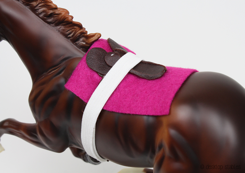 It originally had a green felt pad instead of the hot pink, and a simple snaffle bridle that’s disappeared.