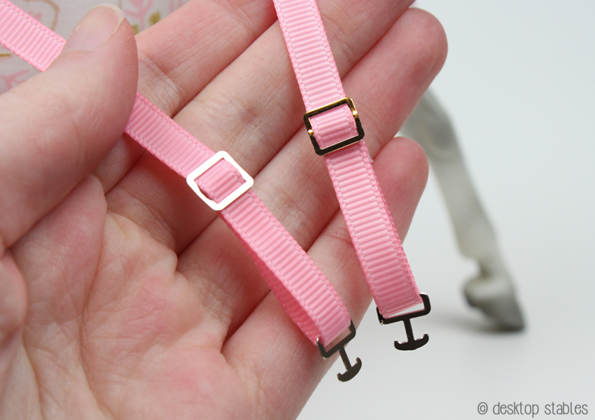 The new leg straps have a loop one one end and a hook on the other. You loop the strap around one of the rings to attach it. I liked this design because it avoids more hardware and secures the strap in a non-permanent way. It’s based off real straps, so it’s both more realistic and less likely to get lost when off the model. 👍 And if they don’t fit the horse at all because of weird leg positions off they go!