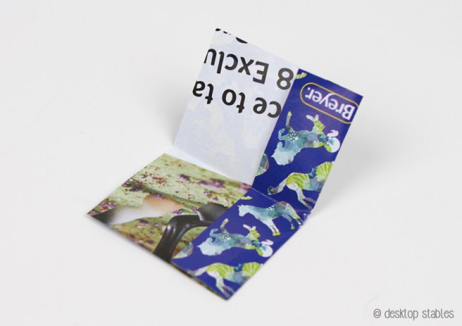 I loved the print on the beach towel and decided to make a miniature folder from it. This was made from a long rectangle, with one edge folded up.