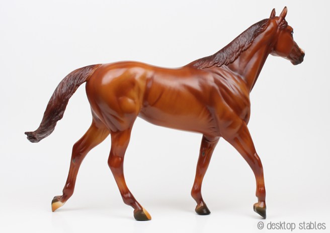 My first adult model horse purchase was Zenyatta. I am a fan and I thought it was crazymaking that I’d pay $55 for a plastic horse. But there she is. Still in her box as is her foal, Cozmic One. I bought a Zeny body (really nice body) and she is dressed in full racing tack custom made for her by several craftspeople. 🙂 I love the Carrick mold too and love that Breyer is paying attention to be sure the faces are put together correctly so they are balanced and not off set.