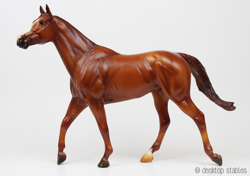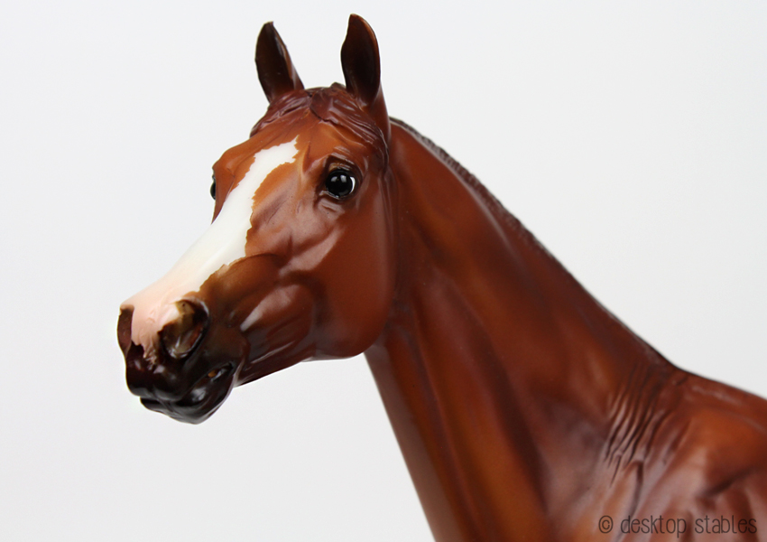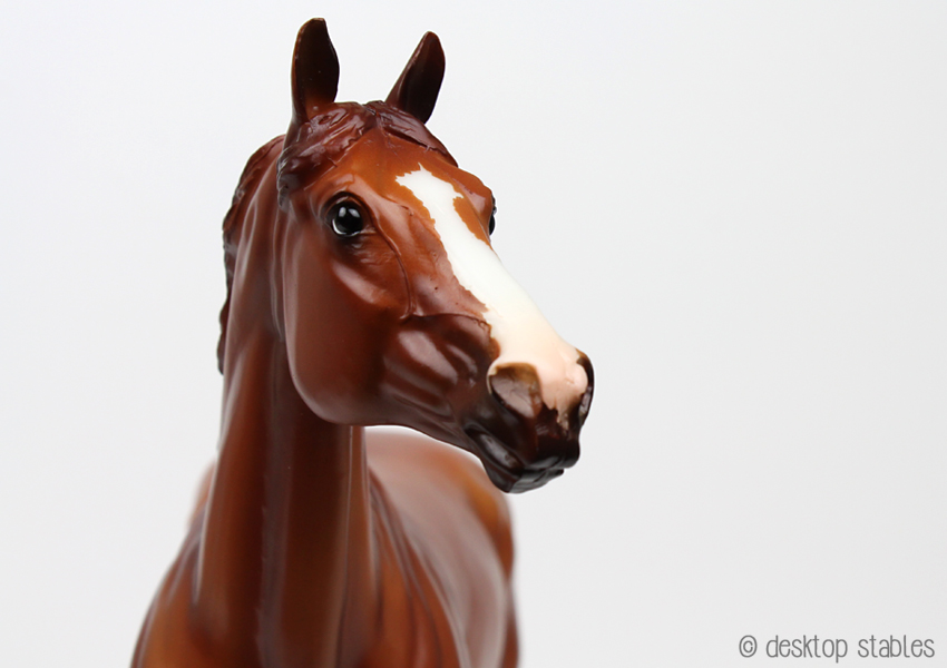 My first adult model horse purchase was Zenyatta. I am a fan and I thought it was crazymaking that I’d pay $55 for a plastic horse. But there she is. Still in her box as is her foal, Cozmic One. I bought a Zeny body (really nice body) and she is dressed in full racing tack custom made for her by several craftspeople. 🙂 I love the Carrick mold too and love that Breyer is paying attention to be sure the faces are put together correctly so they are balanced and not off set.