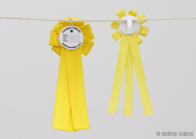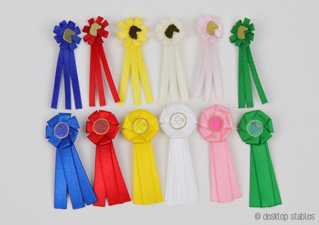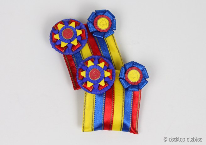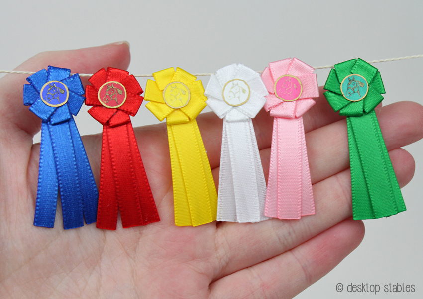 Ever since then I’ve had ribbons on my mind. I’ve made mini NAN and Breyerfest inspired ribbons, and today, a set of basic horse show ribbons.